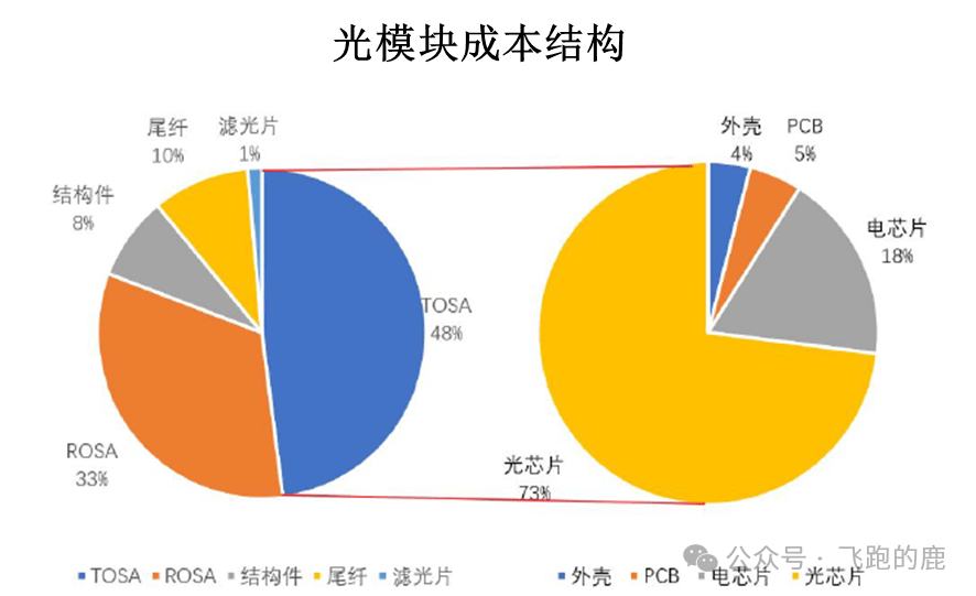 成本上,光学器件(含光芯片)占比超 70%,是实现光电转换的核心;外壳、PCB、控制芯片等辅料占近 30%,负责物理封装和信号适配,两者共同构成光模块的硬件基础。